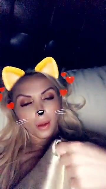 Nikki Benz lying on a white sofa and masturbating