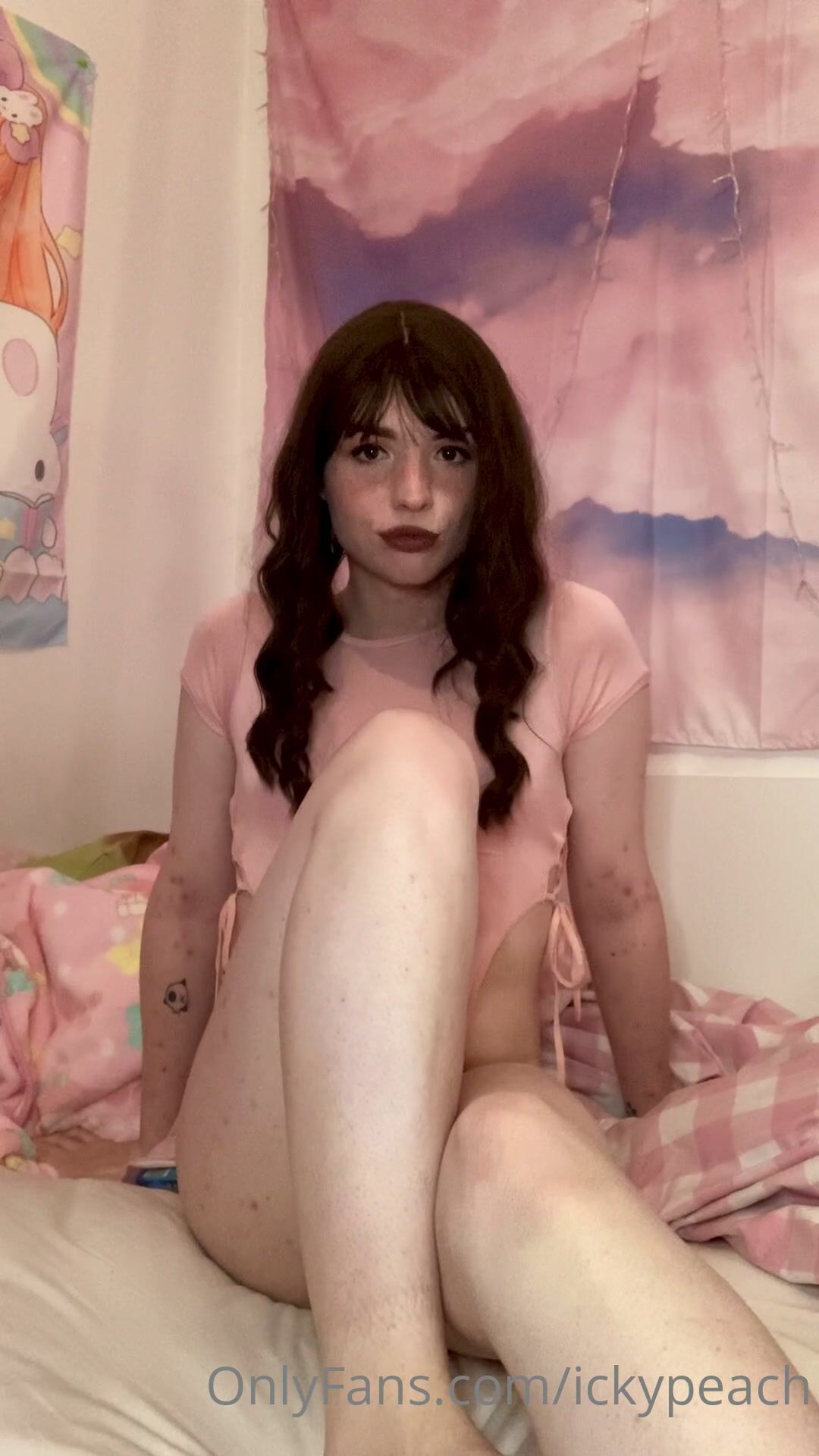ickypeach onlyfans Naked babe plays with her shaved wet pink hole
