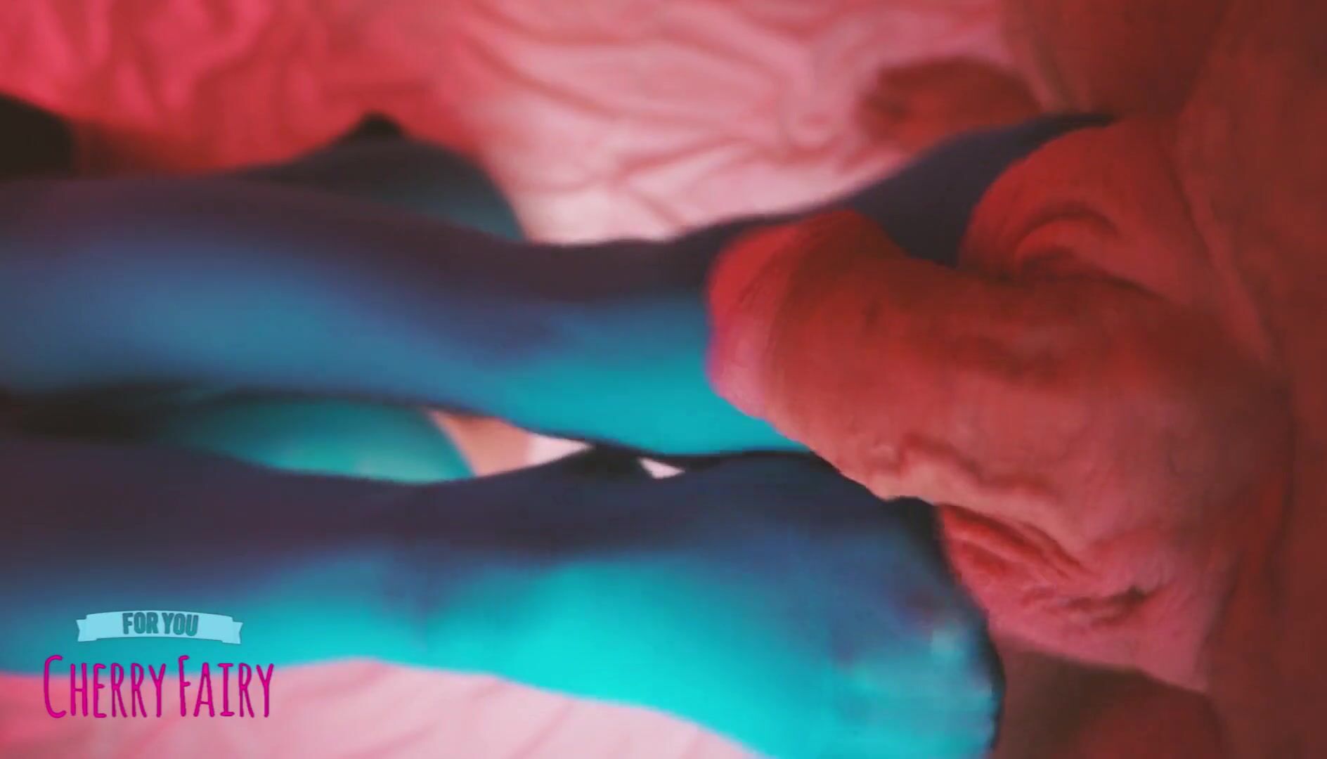 Cherry Fairy _Cumshot On The Little Feet Of A Cute Teen In Blue Ripped Pantyhose